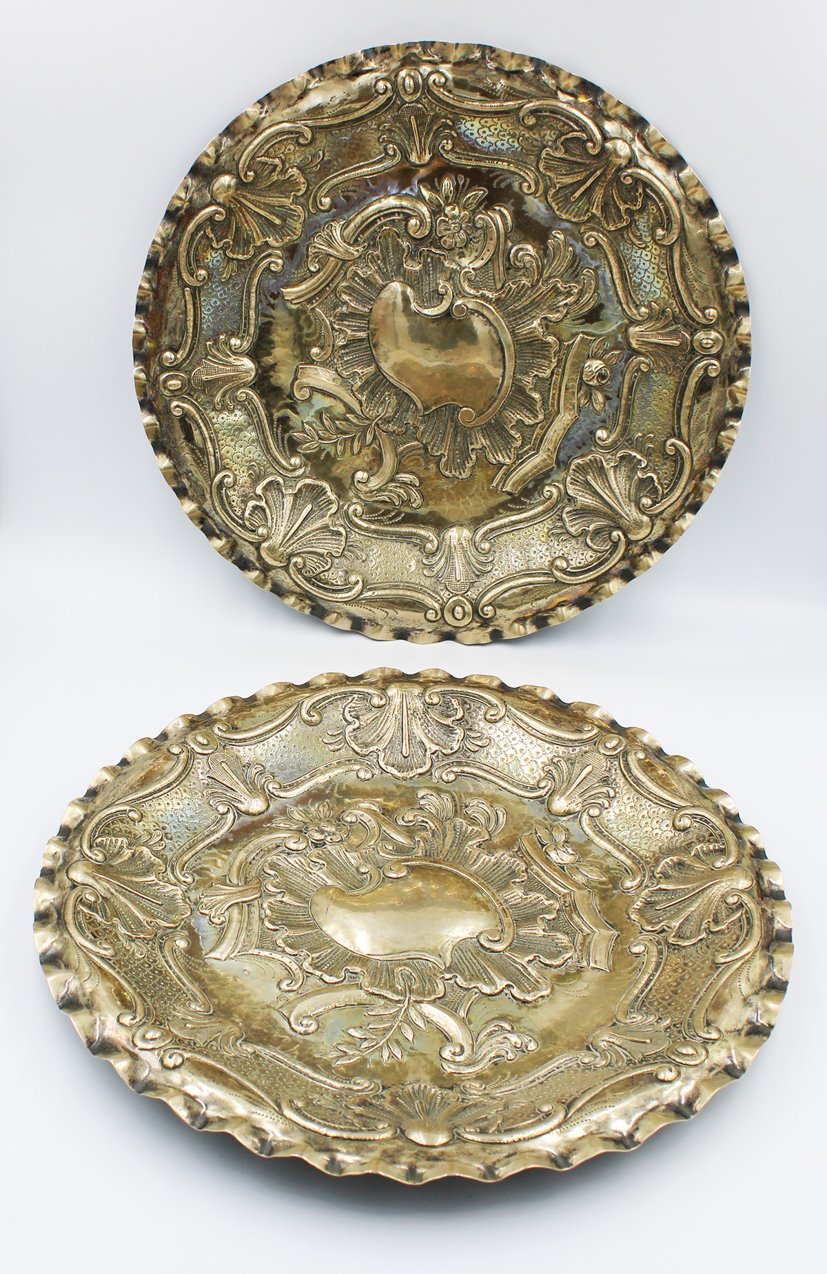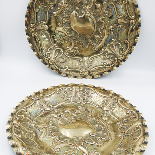 Pareja de bandejas de plata repujada