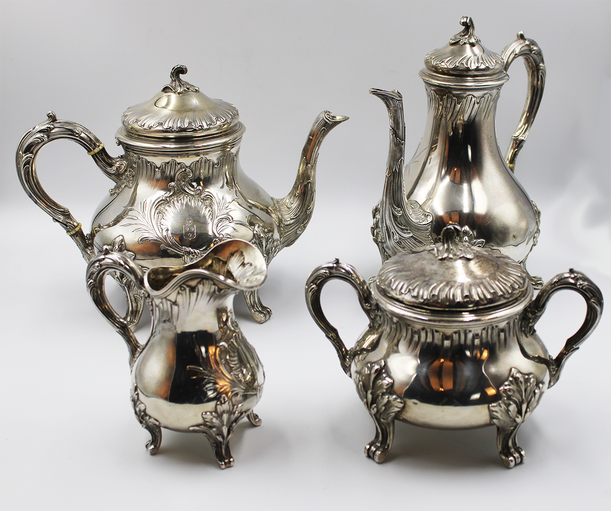 23 x 21 cm (cafetera) / 19 x 25,5 cm (tetera) / 13 x 12 cm (lechera) / 14,5 x 18,5 cm (azucarera)