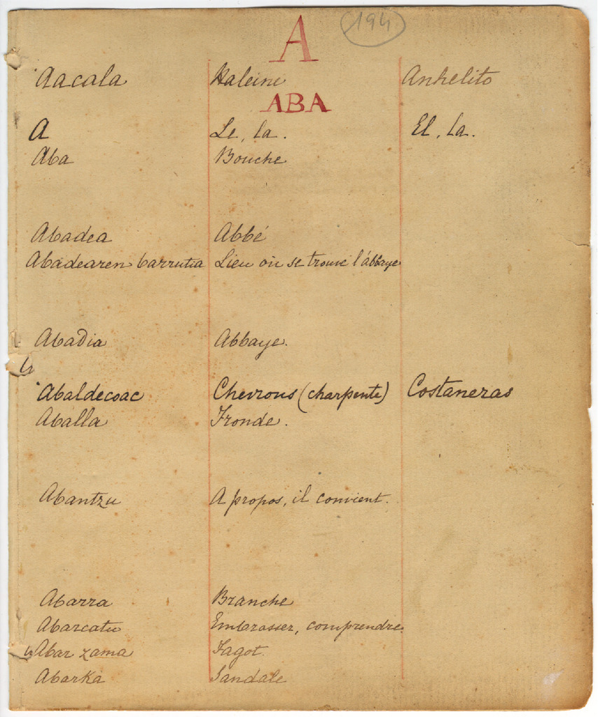 54. EYS, W. J. van - Dictionnaire basque-francais (azken idazkera , orrien faltan)