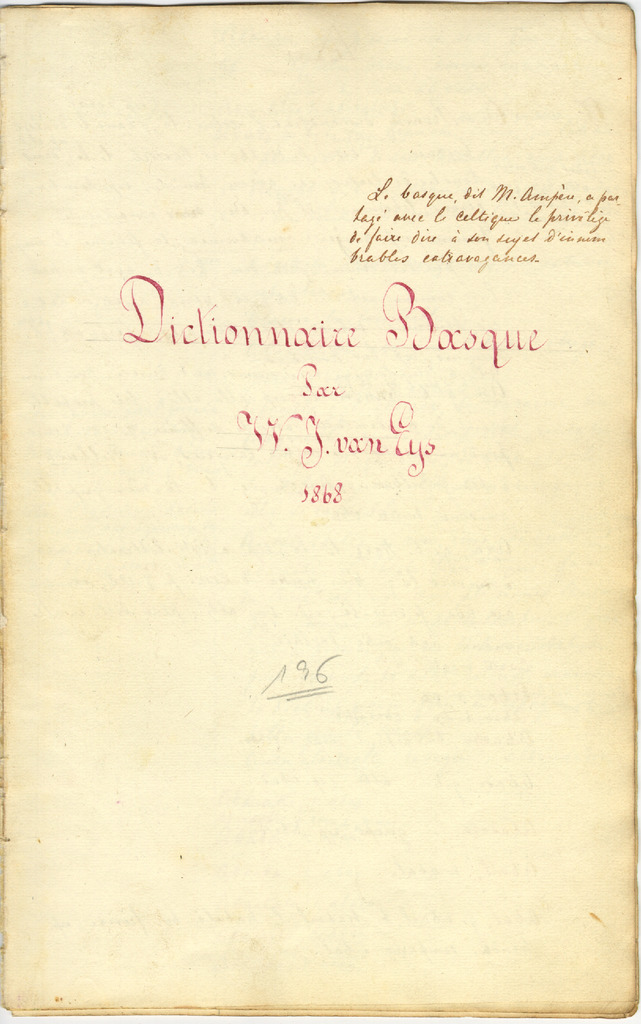 53. EYS, W. J. van - Dictionnaire basque (1868)