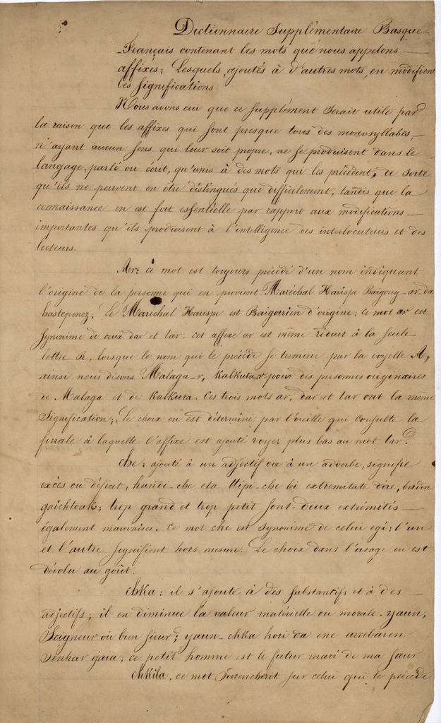 21. SALABERRI, J. - Vocabulaire de mots basques. Avant propos, A-Zuzi