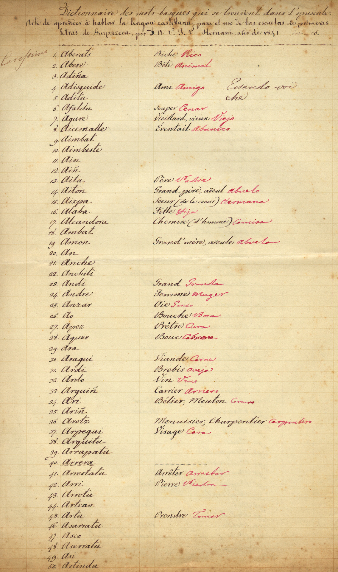 57. BONAPARTE, L.L. - Dictionnaire des mots basques qui se trouvent dans l’opuscule: “Arte de aprender a hablar la lengua castellana”