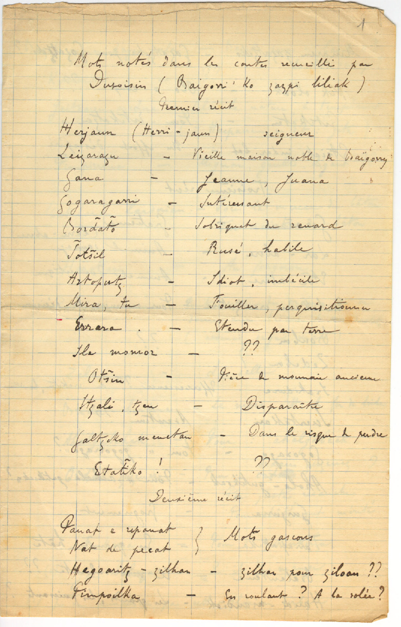 9. BROUSSAIN, Pierre - Mots notés dans les cartes recueillis par Duvoisin
