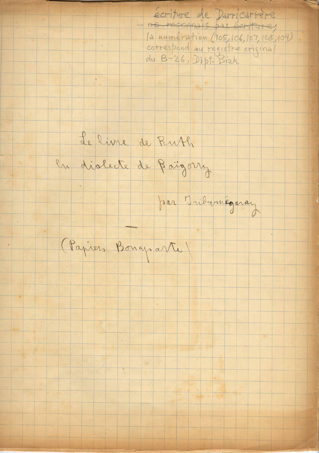 6. DARRICARRERE, J.B. - Bonaparte fondoen kopiak: 1. Le livre de Ruth en dialecte de Baigorry