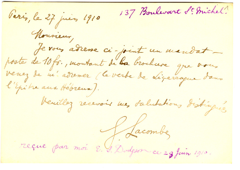 - 30. LACOMBE, George - E.S.Dodgson-i 1910