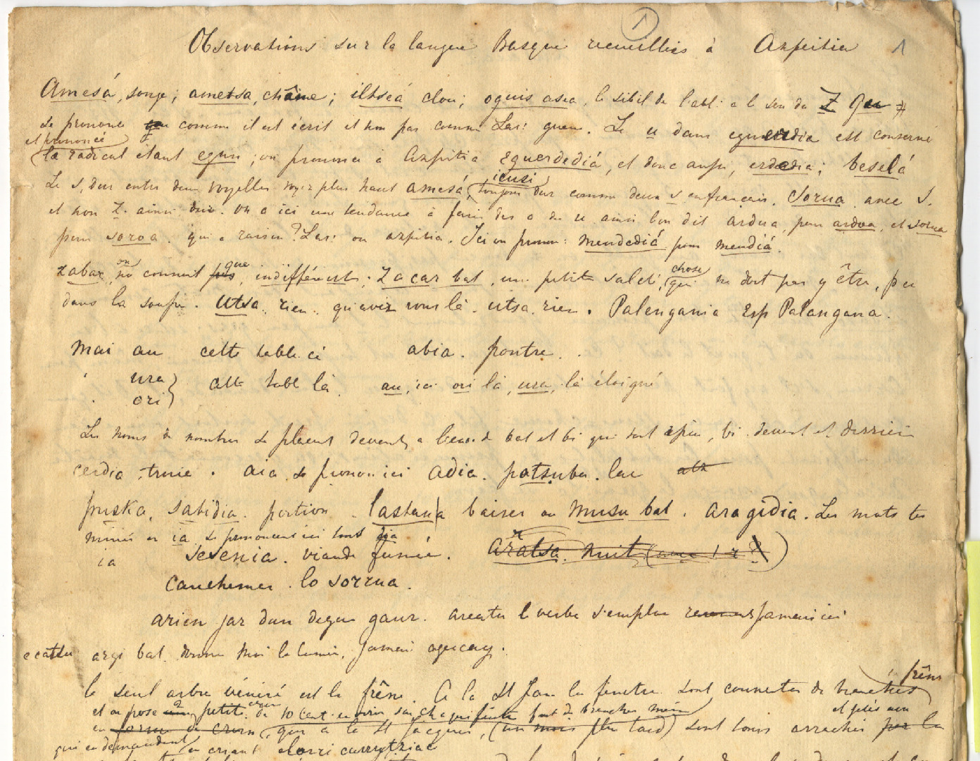64. EYS, W. J. van - Euskararen inguruko oharrak: 1. Observations sur la langue recueillies a Azpeitia