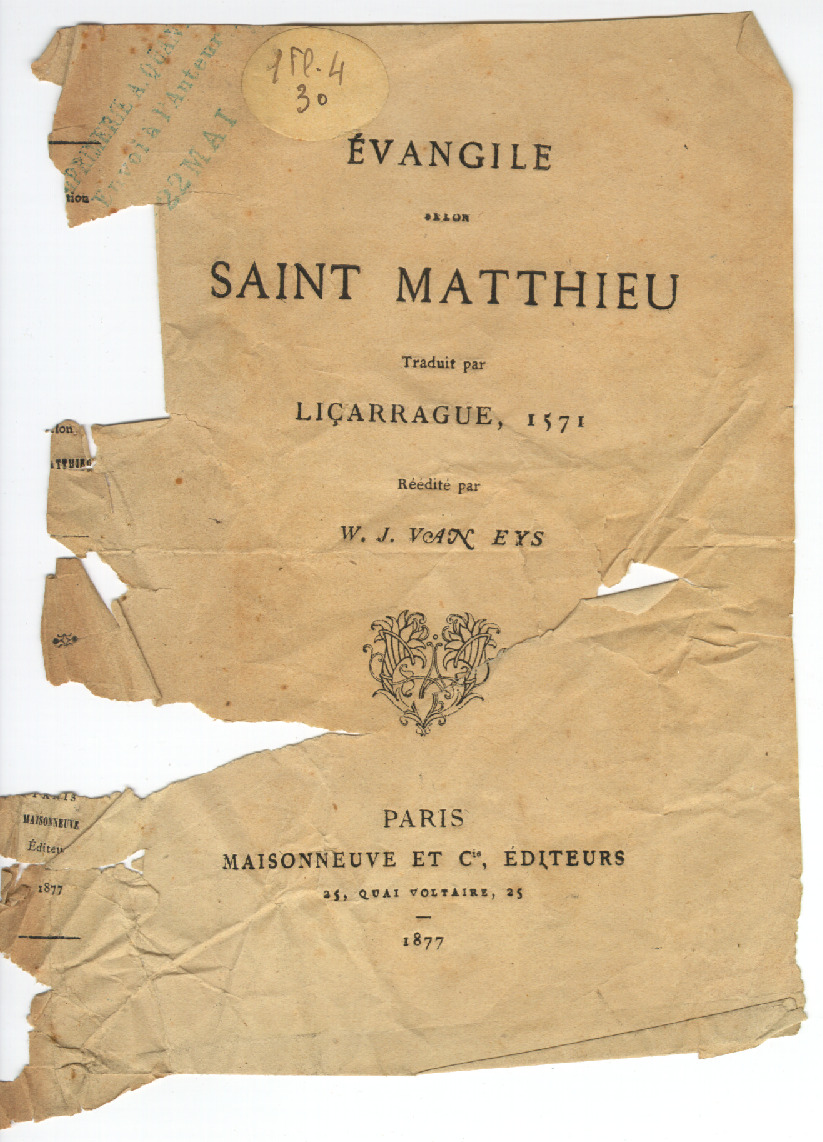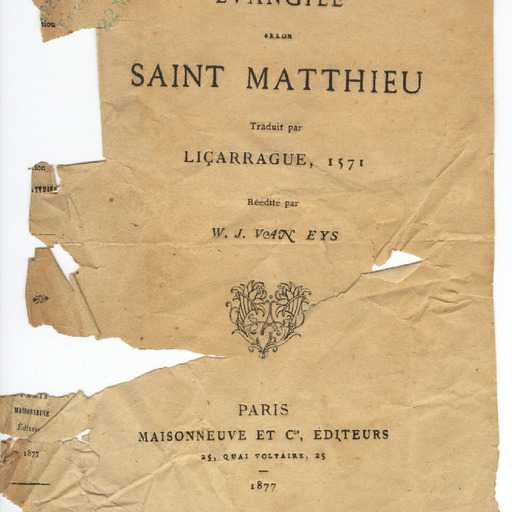 - 69. EYS, W. J. van - Évangile selon Saint Matthieu: 1. Inprimakia eskuzko oharrekin