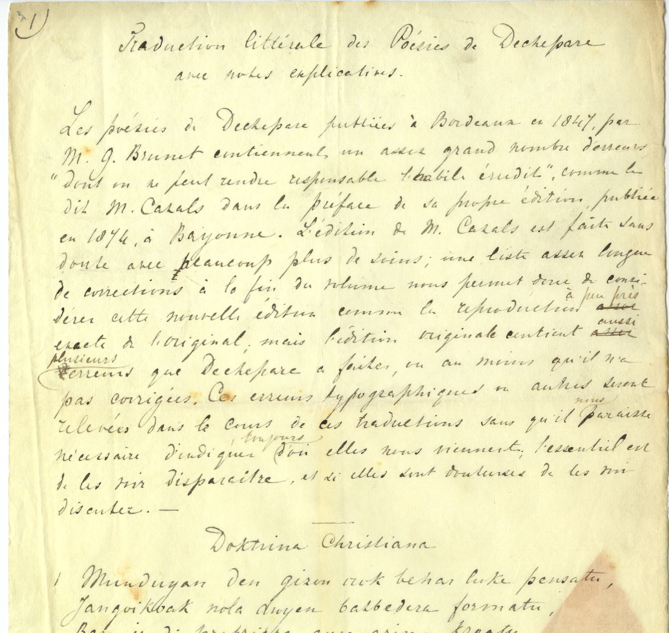 84. EYS, W. J. van - Lingua Vasconum Primitiaren edizio kritikoa: 3. Traduction littérale des poésies de Dechepare avecnotes explicatives