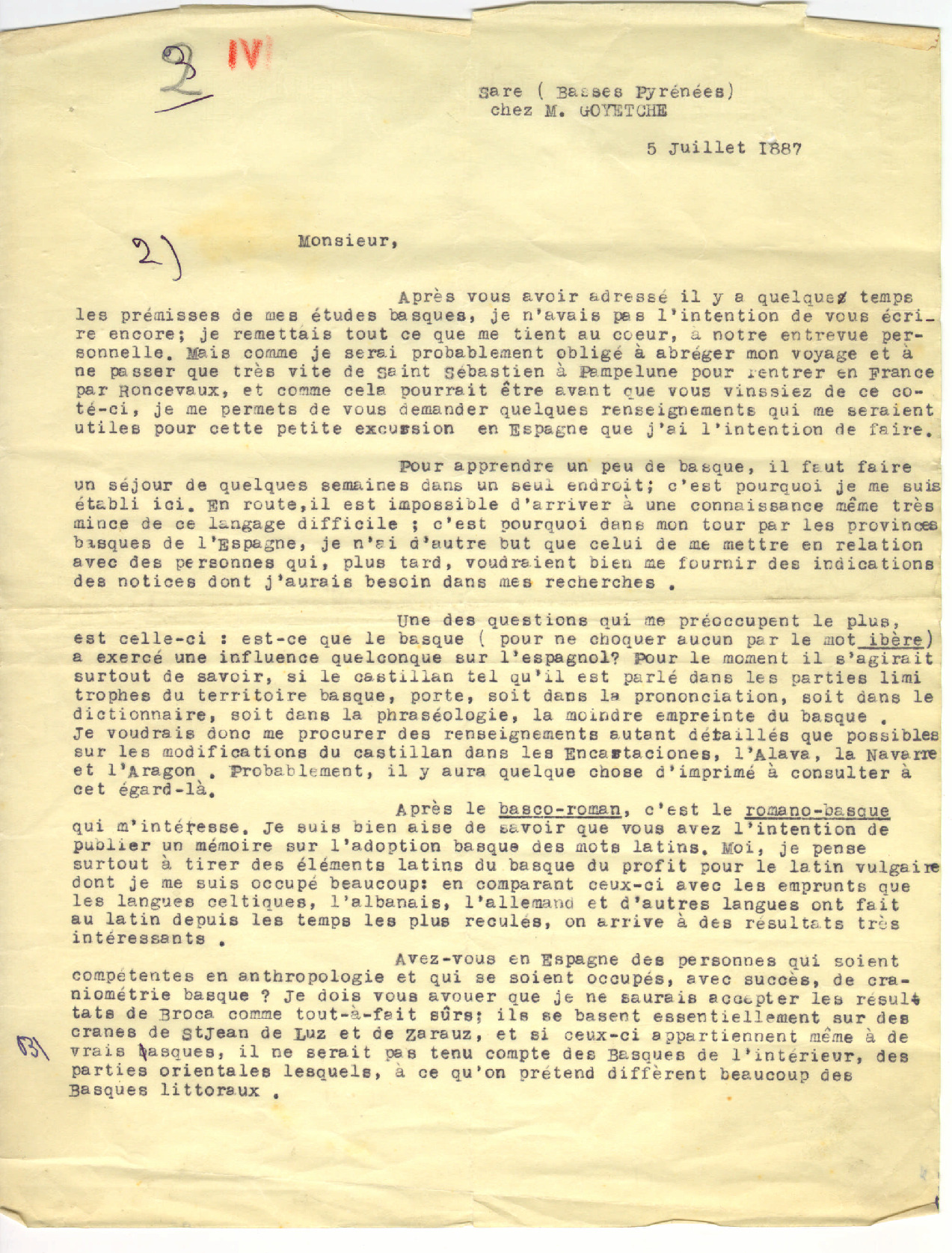 82. LACOMBE, G. - Hugo Schuchardtek A. Campion-i egindako gutunen kopiak