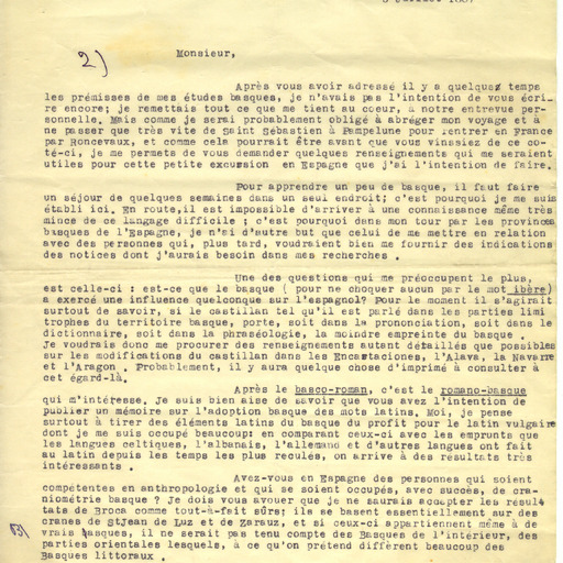 - 82. LACOMBE, G. - Hugo Schuchardtek A. Campion-i egindako gutunen kopiak