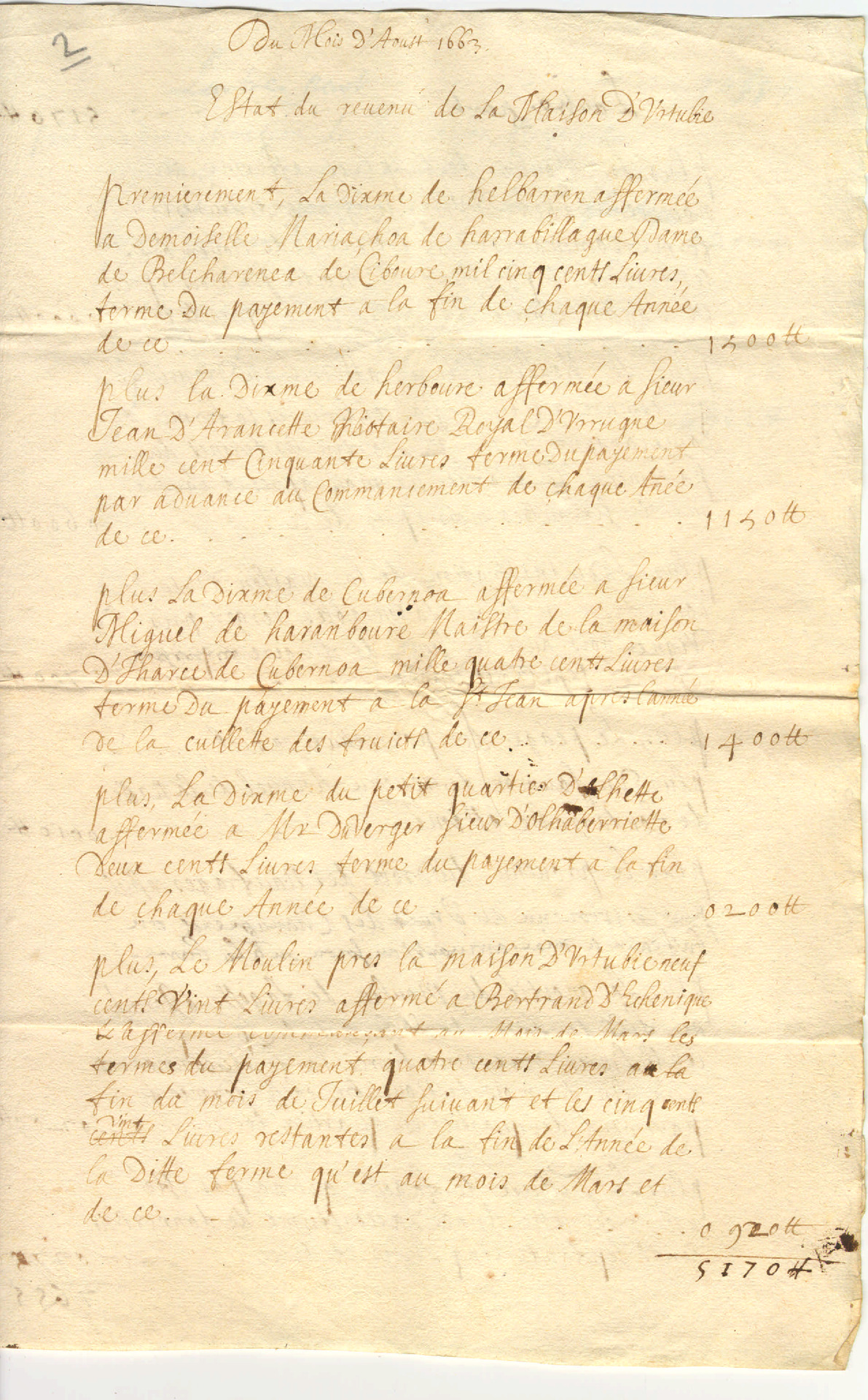 22. 1663. Urtubiako errentak