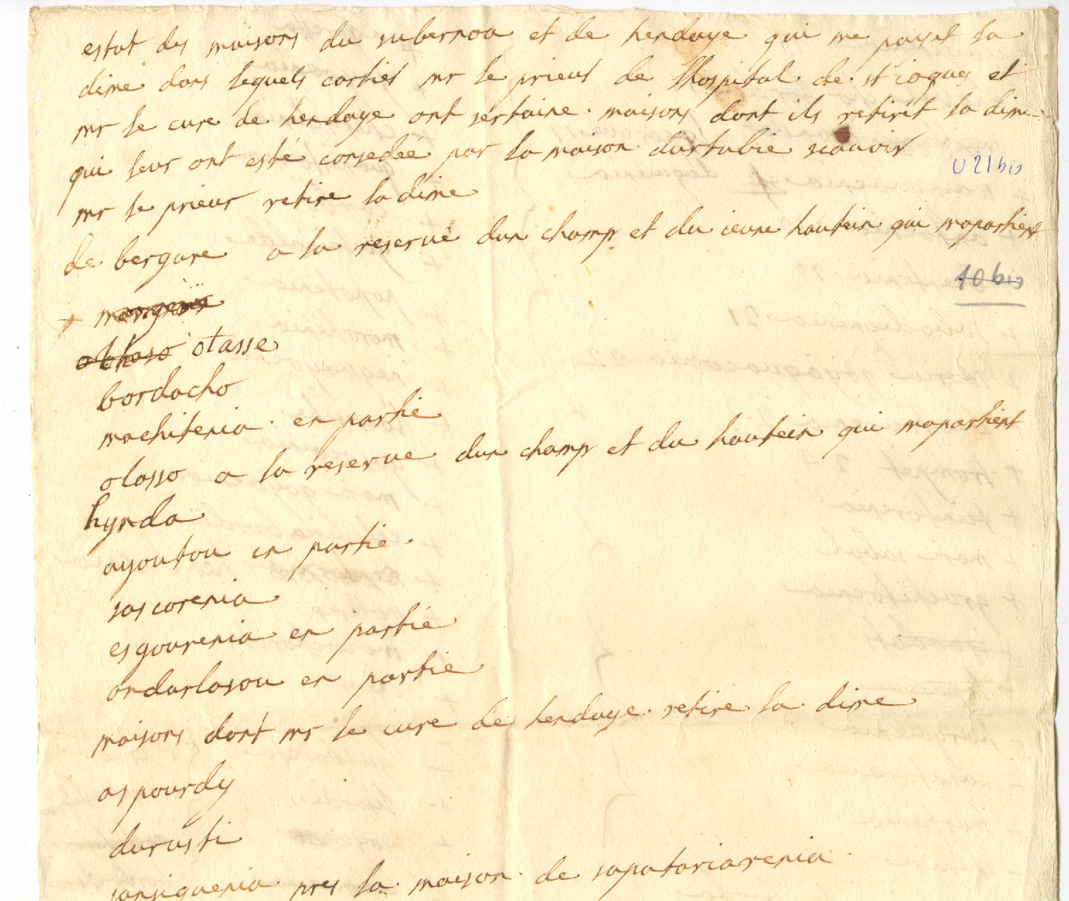 - 30. 17??. Zubernoa eta Hendaiako etxeen izenen zerrenda. Hospitaleko prioratoaren ordainketaz