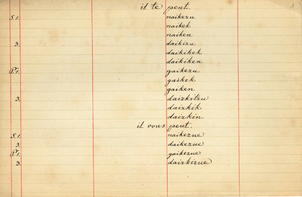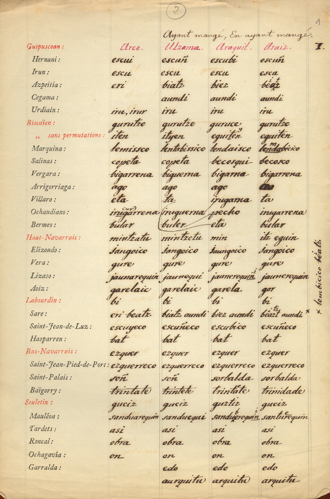 BONAPARTE, L.L. - Tableau montrant les permutations des voyelles d’apres les différentes variétés de la langue basque