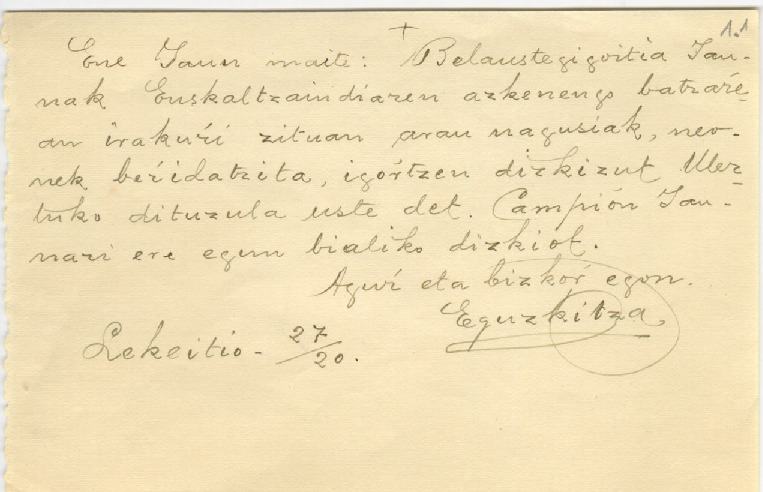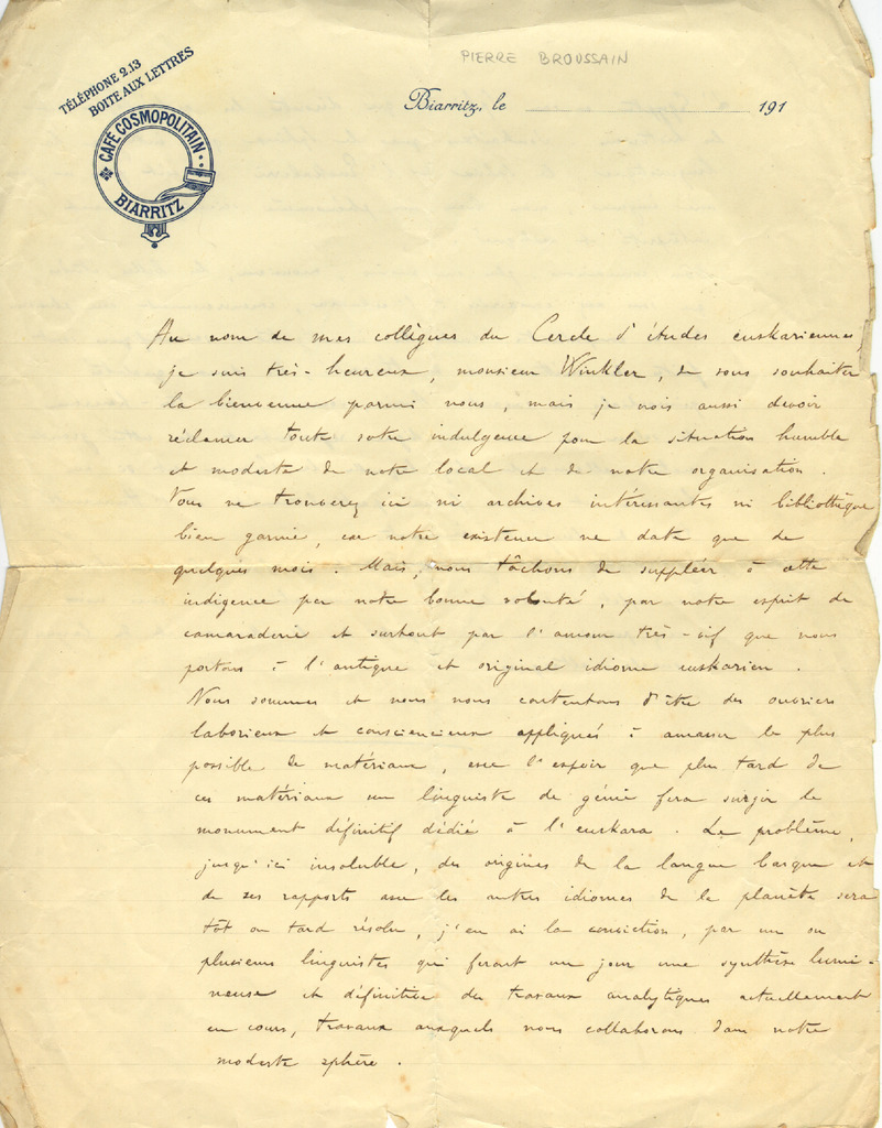 1. AZKUE, Resurrección Mª - Pierre Broussain-i gutunak 1920