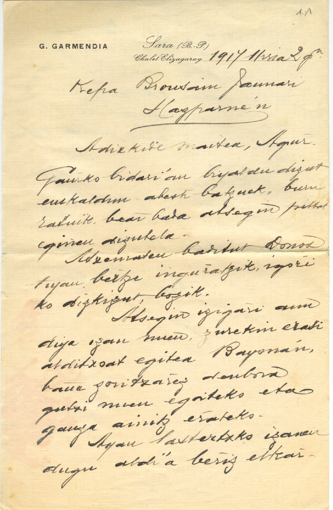 6. GARMENDIA, German - P. Broussain-i gutunak 1917-1920
