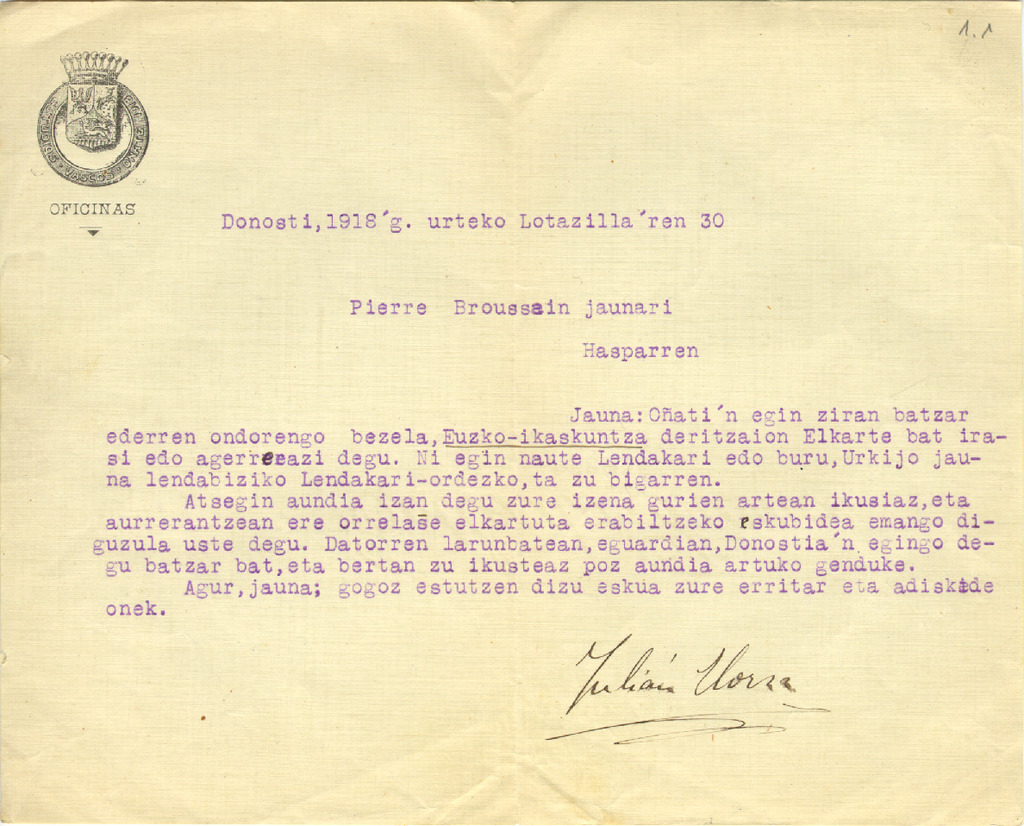 5. EUSKO IKASKUNTZA - P. Broussain-i gutunak 1918-1919