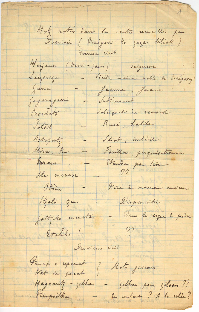 9. BROUSSAIN, Pierre - Mots notés dans les cartes recueillis par Duvoisin