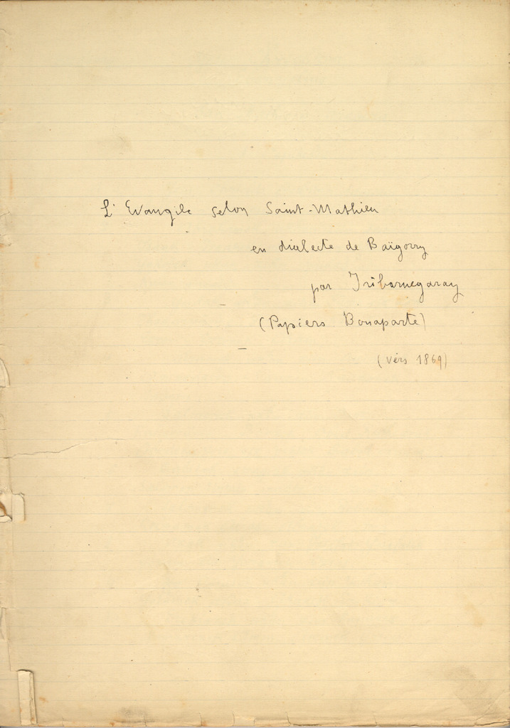 8. DARRICARRERE, J.B. - Bonaparte fondoen kopiak: 3. L’Evangile selon Saint-Mathieu en dialecte de Baigorry