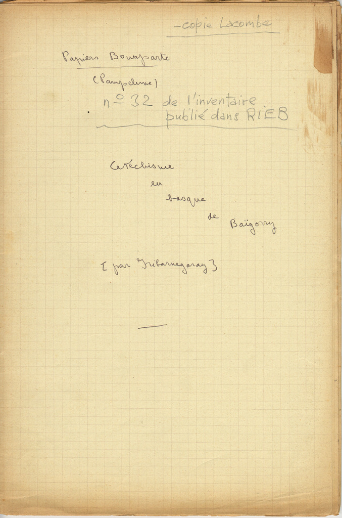 10. DARRICARRERE, J.B. - Bonaparte fondoen kopiak: 5. Catéchisme en dialecte de Baigorry