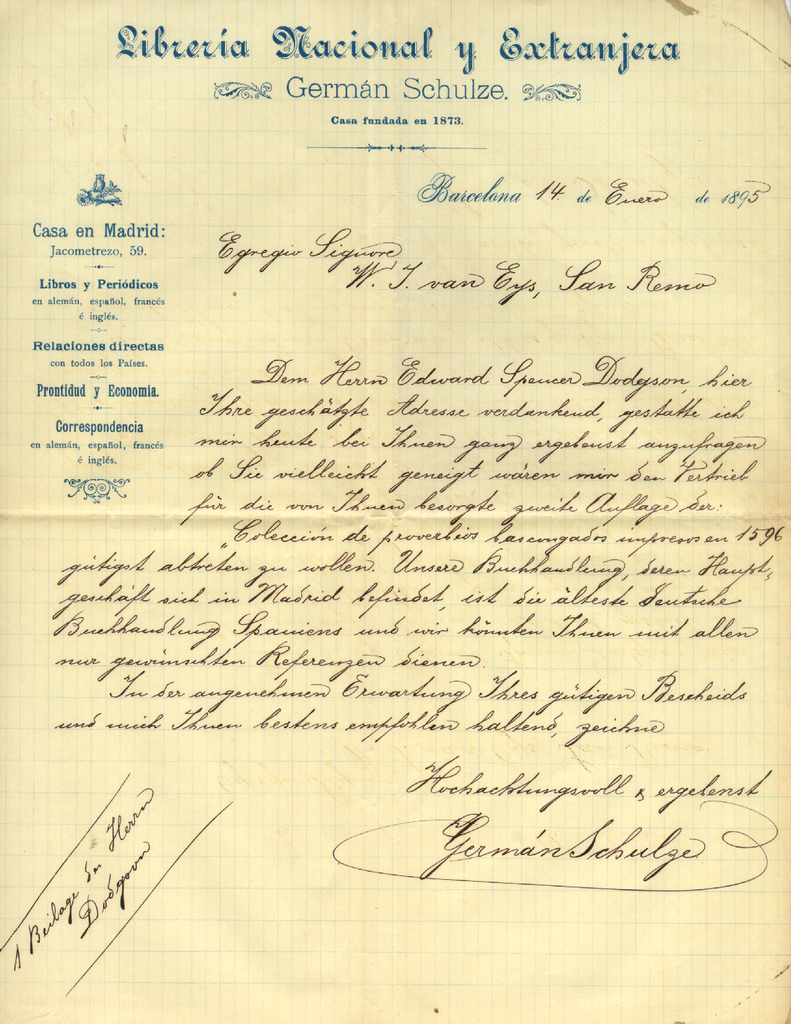 35. SCHULZE, Germán (Libr.) - W.J. van Eys-i 1895