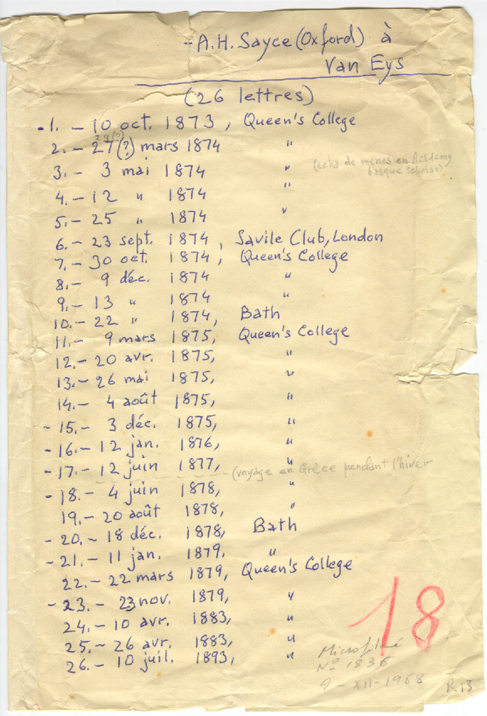 33. SAYCE, A.H. - W.J. van Eys-i 1873-1893