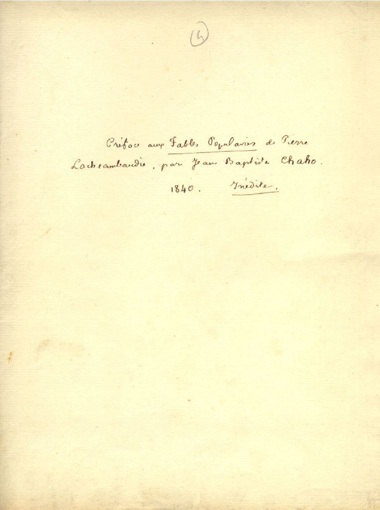 15. XAHO, Jean Pierre - 4. Préface aux “Fables Populaires” de Pierre Lachambeaudie. 1840