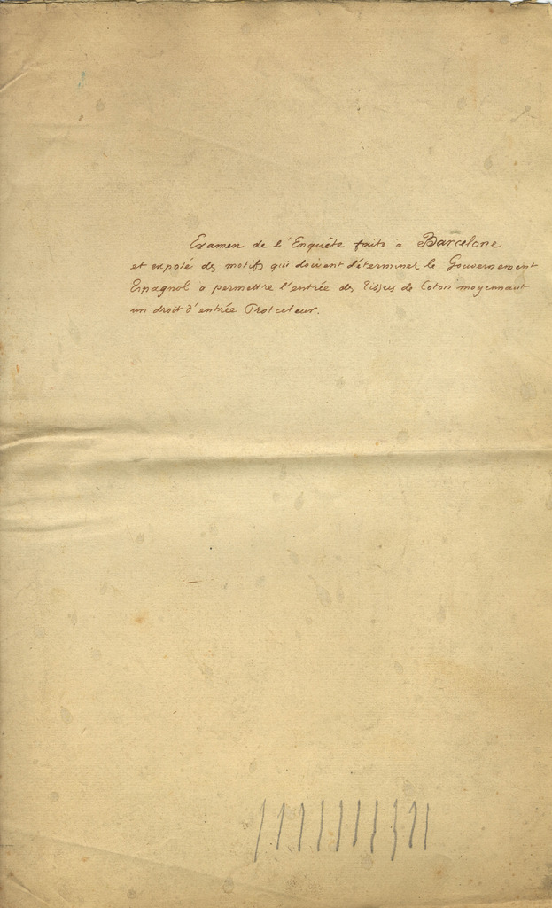 3. XAHO, A. - Examen de l’Enquete faite a Barcelona et exposé des motifs le Gouvernement Espagnol a permettre l’entrée des tissus de coton. 1847