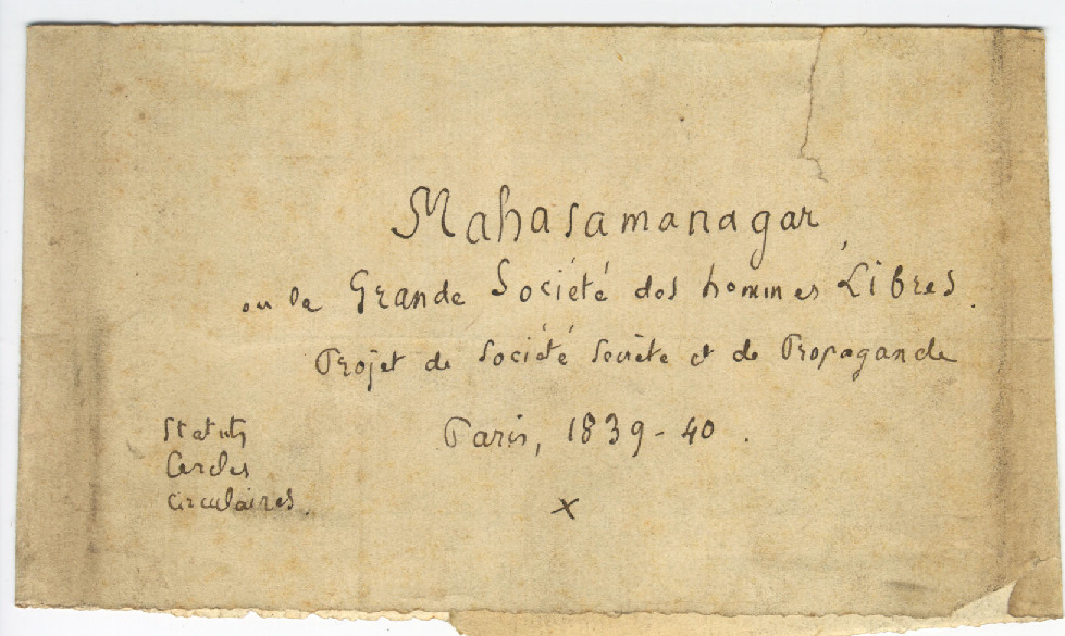 4. XAHO, A. - Le Mahasamanagar ou la Grande Société des hommes libres. Project de société secrete et de propagande. Statuts. Cercles.Circulaires. 1839-40