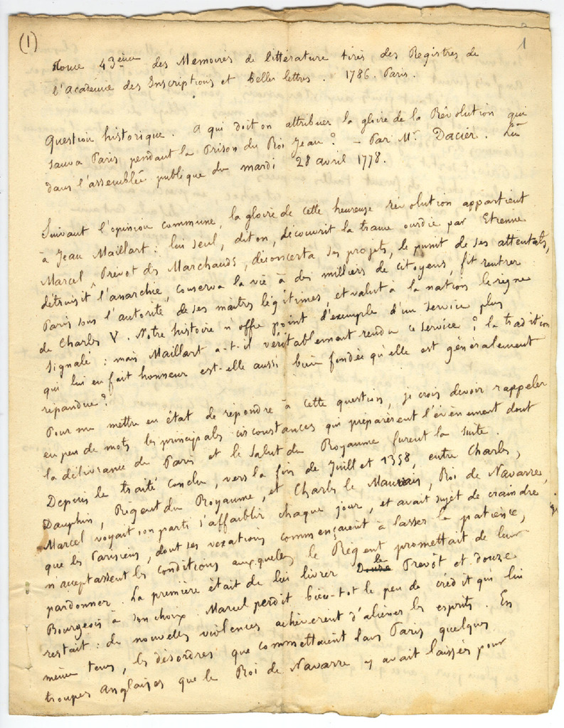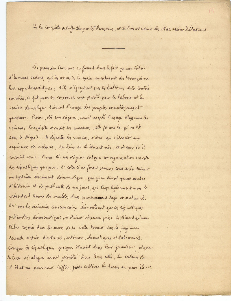 1. XAHO, Augustin - Brouillons et fragmens inédits de la lettre a Jacques Laffitte. 1838
