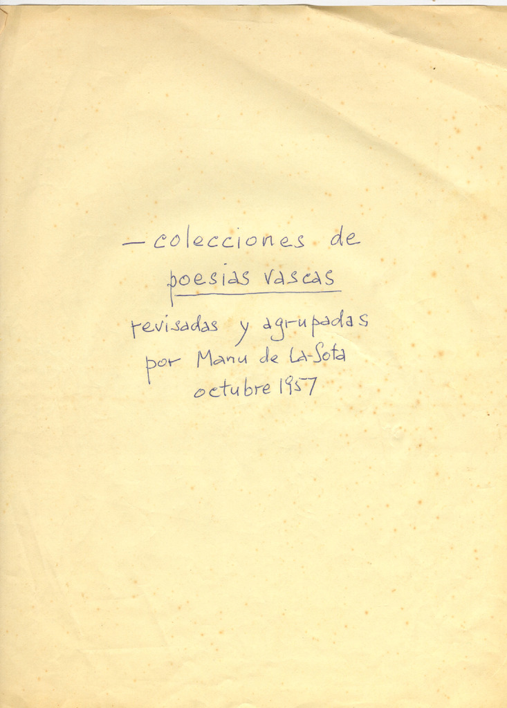 17. XAHO, A. - Collection de chansons basques formées par (Vinson, Lacombe, J. Vilallonga, M. Sota, L. Dassanceren oharrak): 1. Chants populaires de la Navarre et des Provinces Basques. 114 kantu zerrendatuak (falta dira 1, 3, 9, 16, 17, 26, 31, 33, 35, 54)
