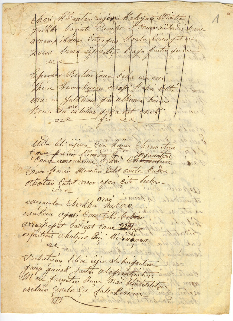 18. XAHO, A. - Collection de chansons basques formées par (Vinson, Lacombe, J. Vilallonga, M. Sota, L. Dassanceren oharrak): 2. Chansons copiées dans le manuscrit preté par E. 11 kantu