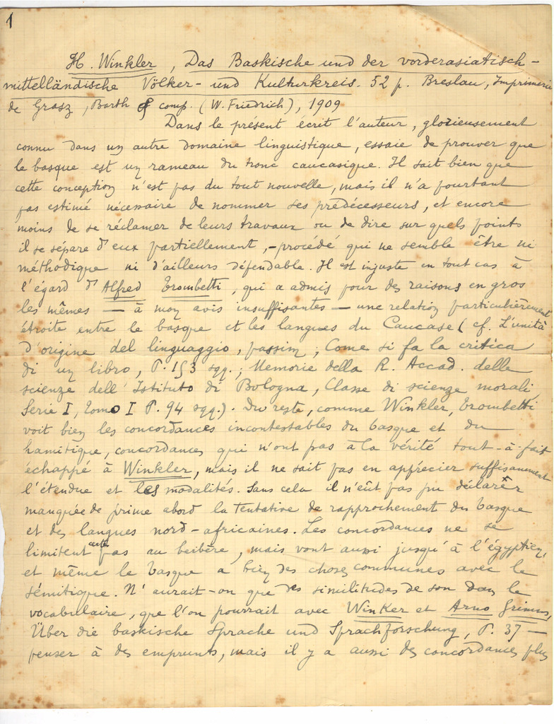 10. UHLENBECK, C. Cornelius - H. Winkler: Das Baskische und der vorderasiatisch-mittellandische Volker- und kulturkreis