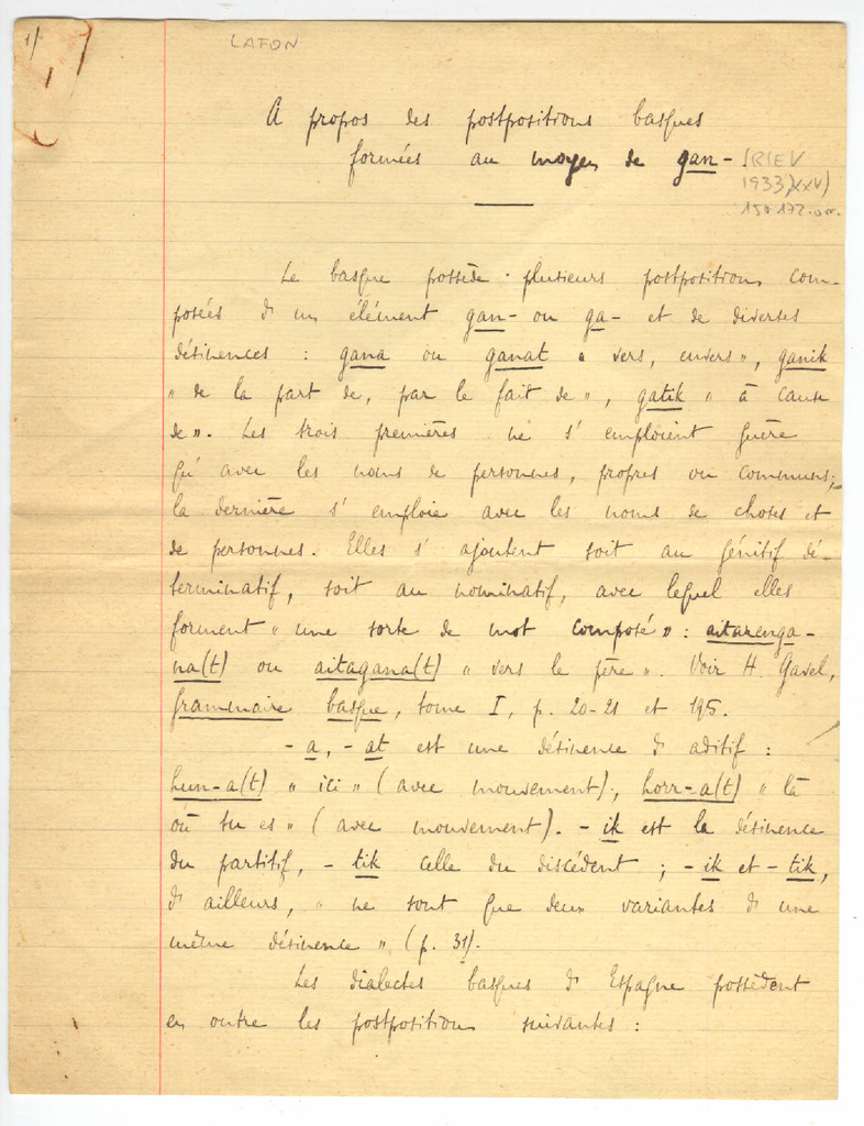 4. LAFON, René - A propos des postpositions basques formées au moyen de gan-