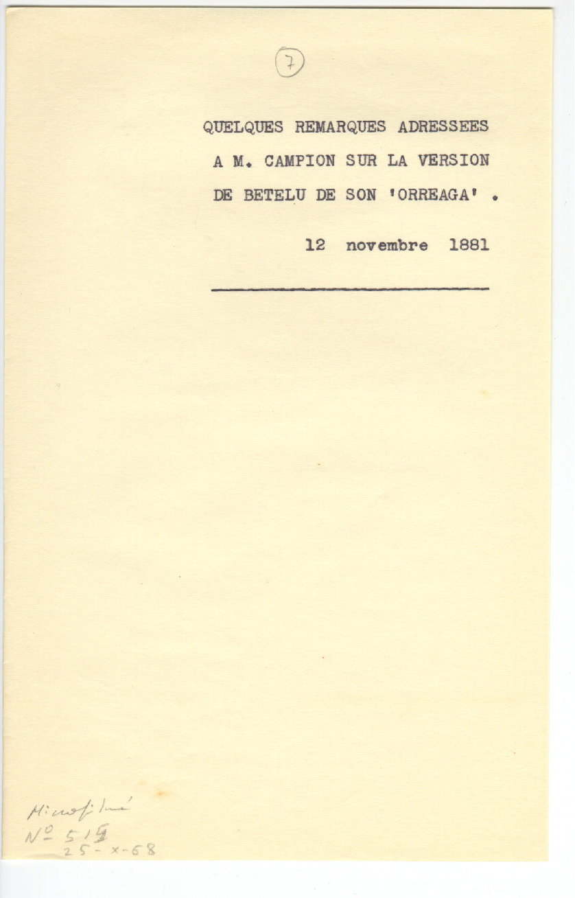 - BONAPARTE, L.L.- Arturo Campioni bidalitako lanak: 7. Observations (Orreagataz)(1881.11.12)