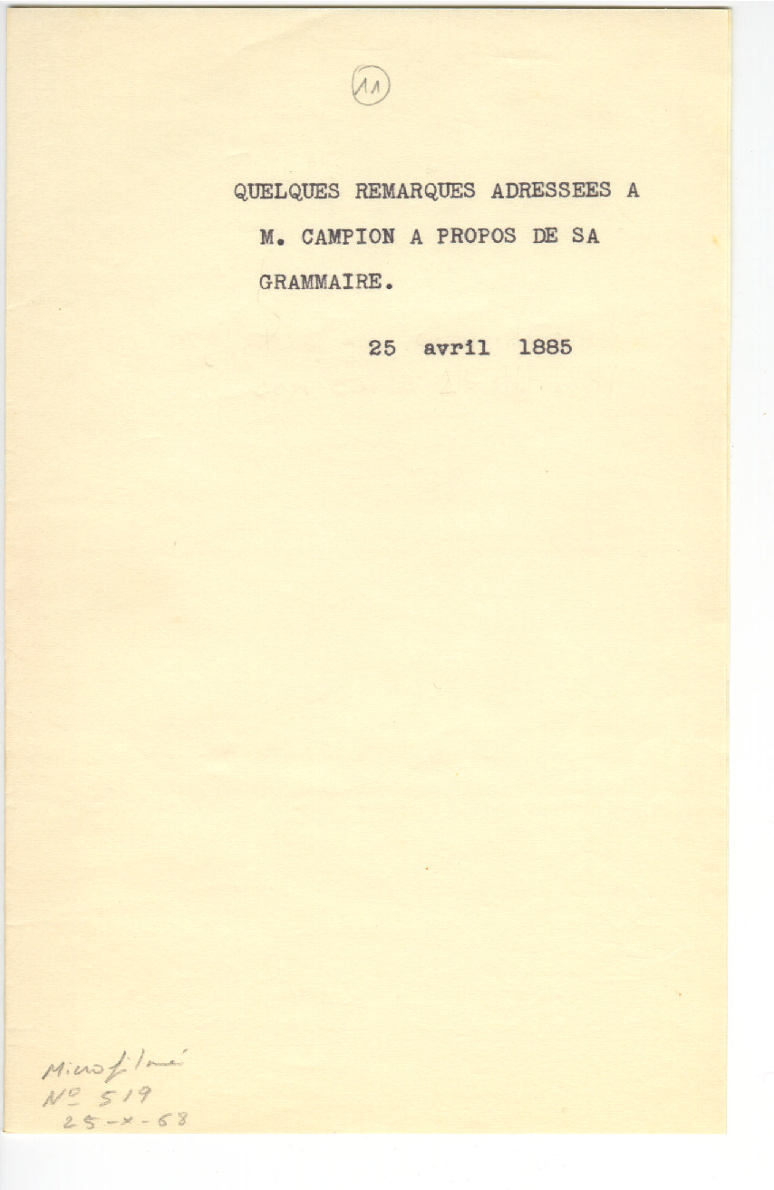 BONAPARTE, L.L.- Arturo Campioni bidalitako lanak: 11. Quelques remarques a M. Campion (1885.04.25)