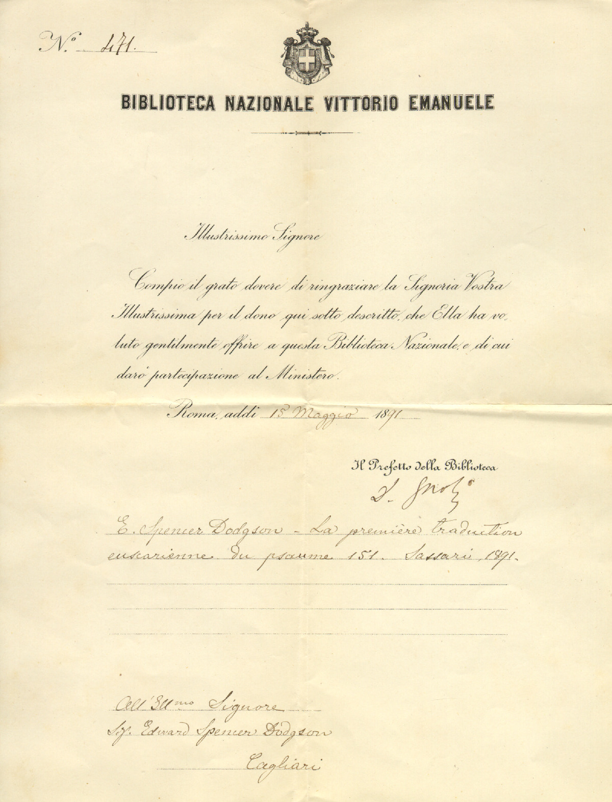 6. BIBLIOTECA NAZIONALE (Roma) - E.S. Dodgson-i 1891