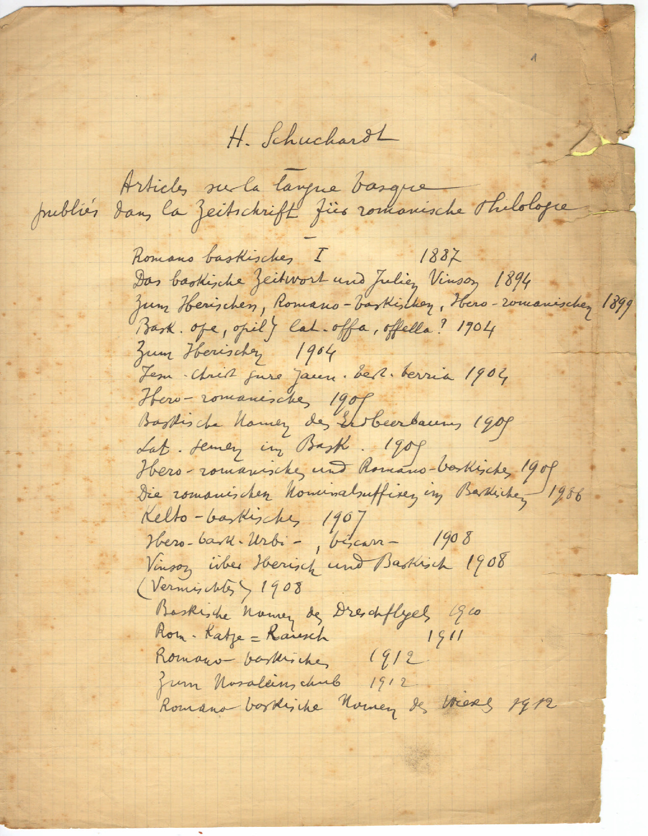 - 1. SCHUCHARDT, Hugo - Articles sur la langue basque. Bibliografía