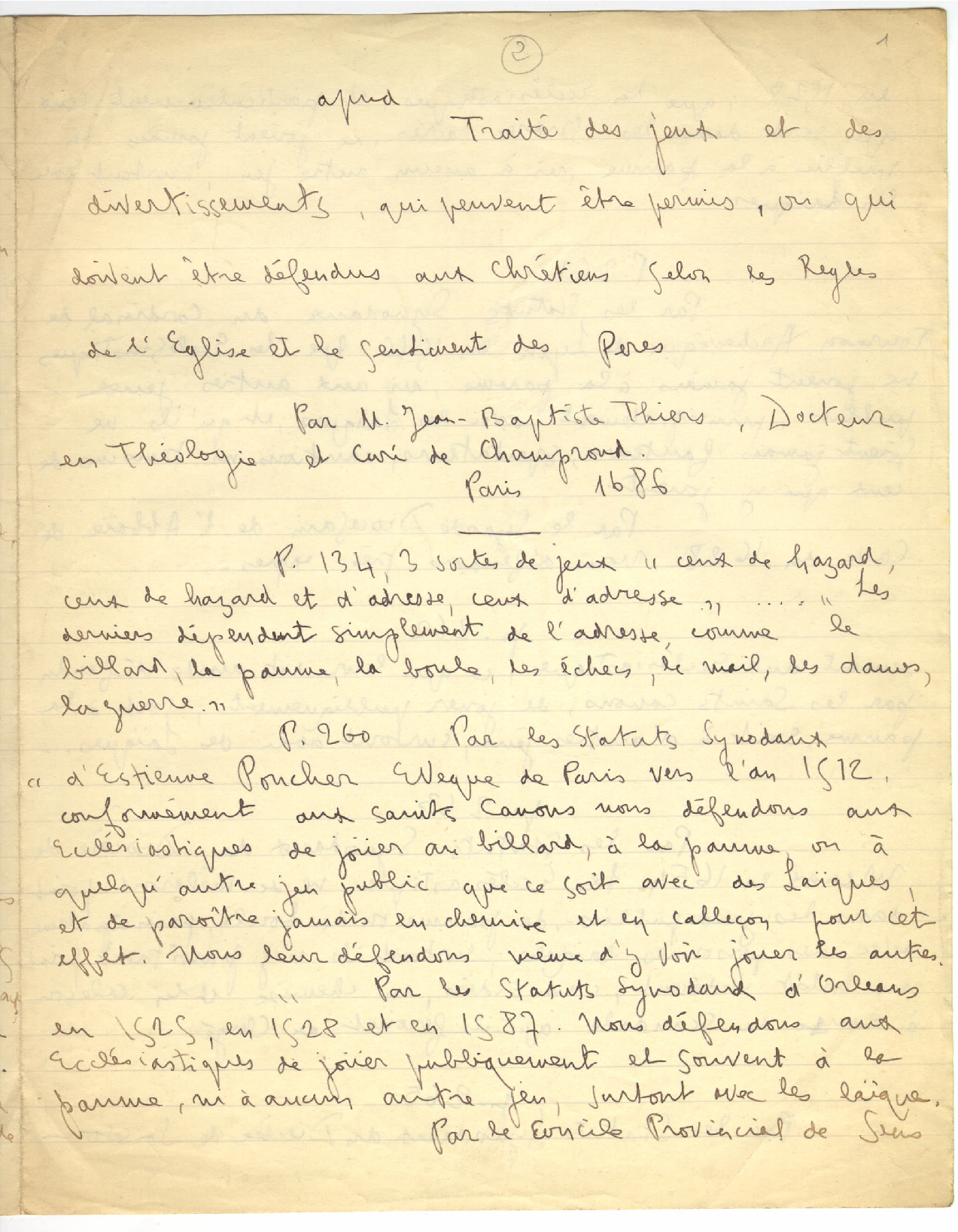 24. LACOMBE, G. - Ohar bibliografikoak: 2. Traité des jent.. segon les Regles de l’Eglise.. par M. Jean-Baptiste Thiers. Paris, 1686