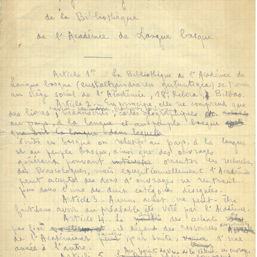 - 27. LACOMBE, G. - Projet de reglement de la Bibliotheque de l’Academie de Langue Basque