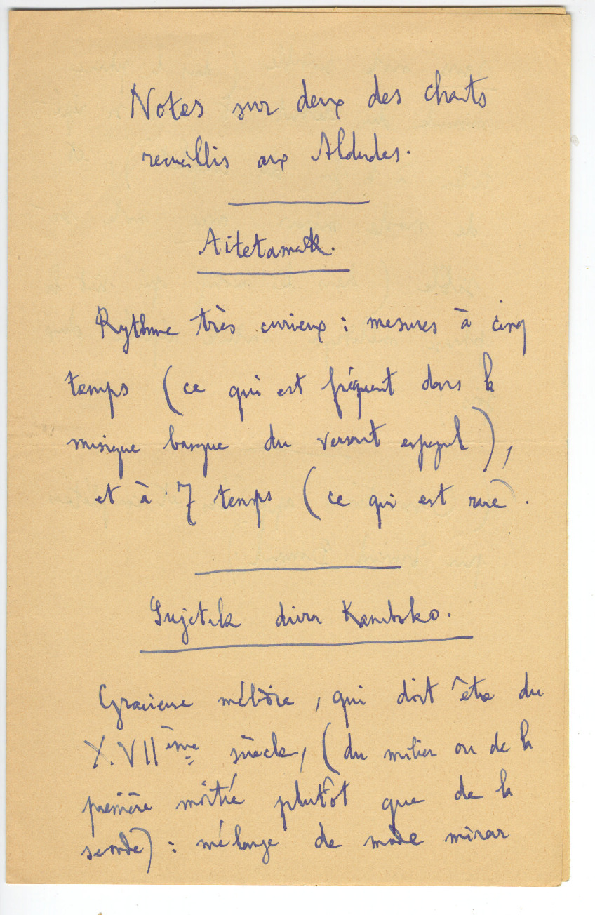 - 3. GAVEL, Henri - Notes sur deux des chants recueillis aux Aldudes