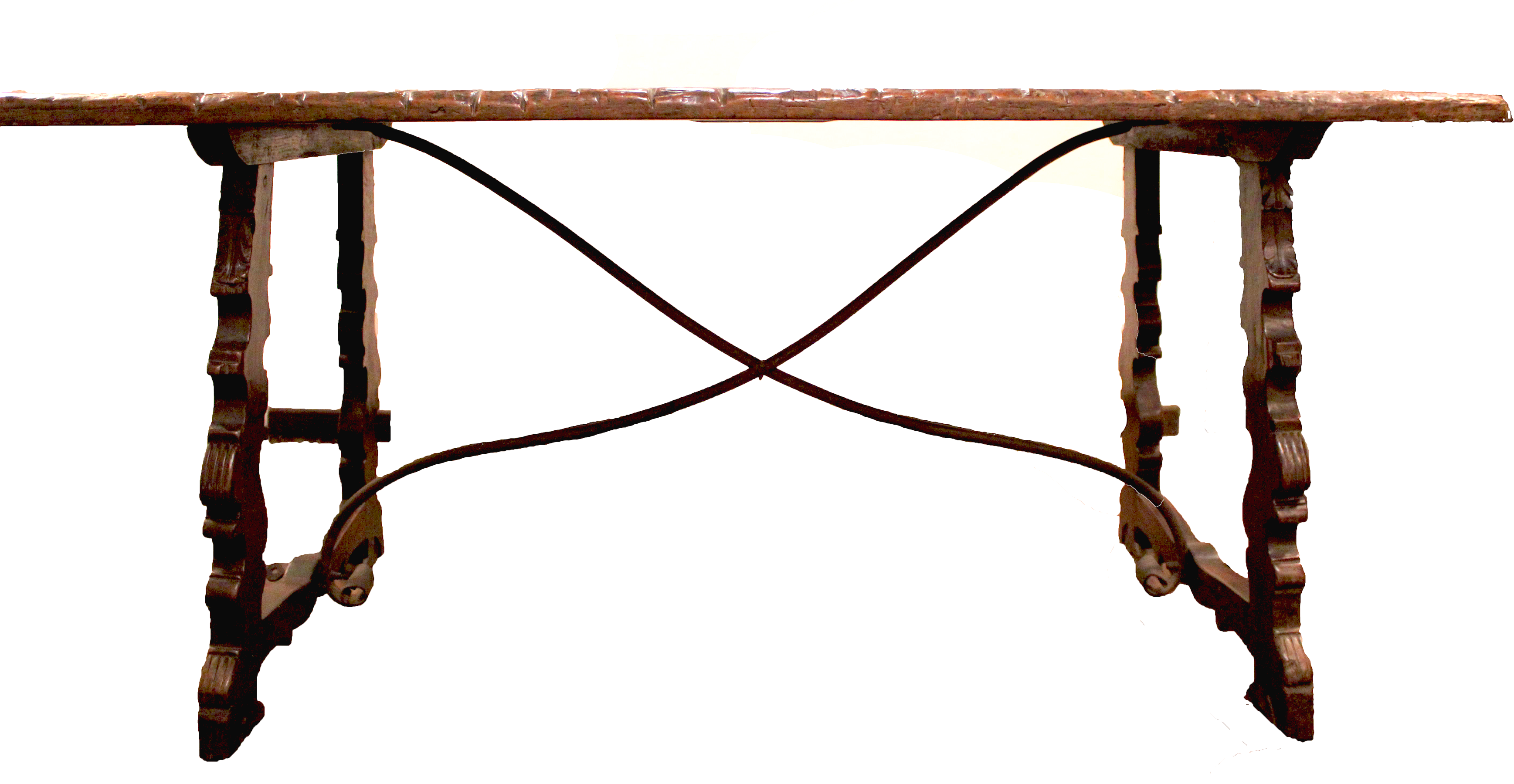 - en Walnut table with iron supports