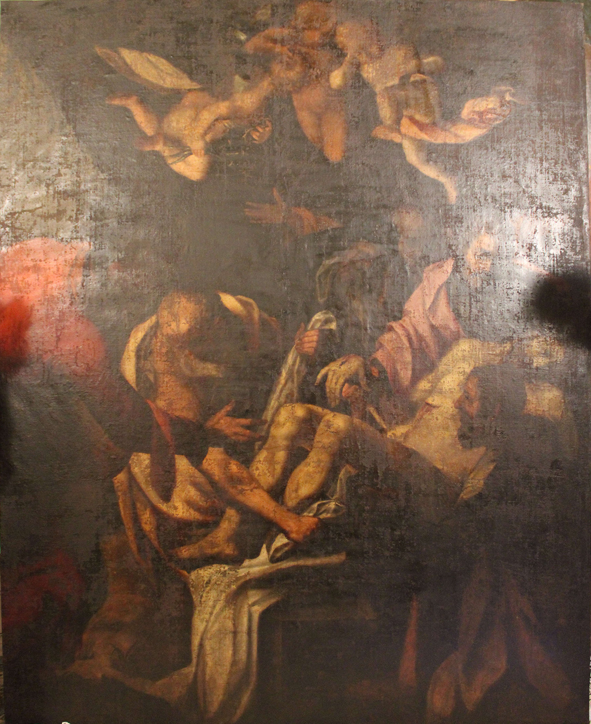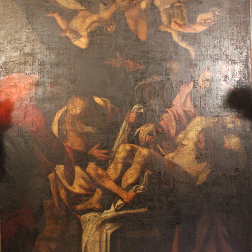 Se representa en el lienzo el momento inmediatamente posterior al Descendimiento de Cristo de la Cruz. Según se relata en los cuatro Evangelios, José de Arimatea pidió permiso a Poncio Pilato para bajar a Jesús de la cruz y llevarlo a un sepulcro cercano excavado en la roca.
