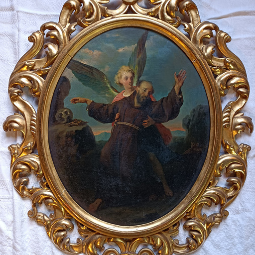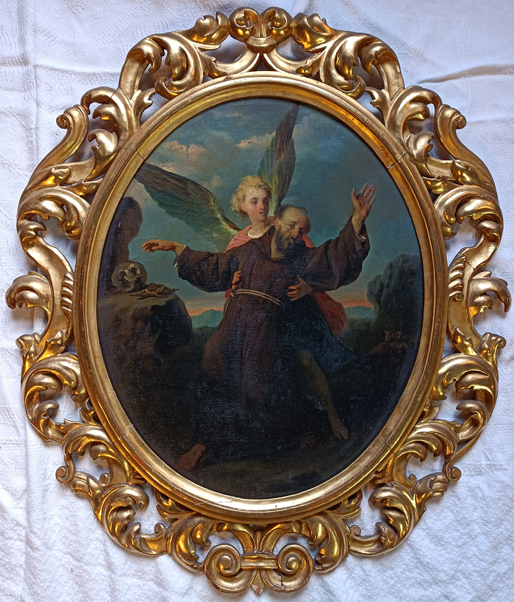 San Frantzisko Asiskoa, aingeru batek sostengatua