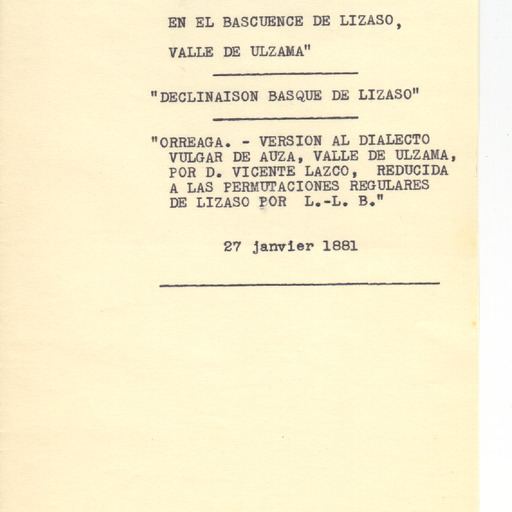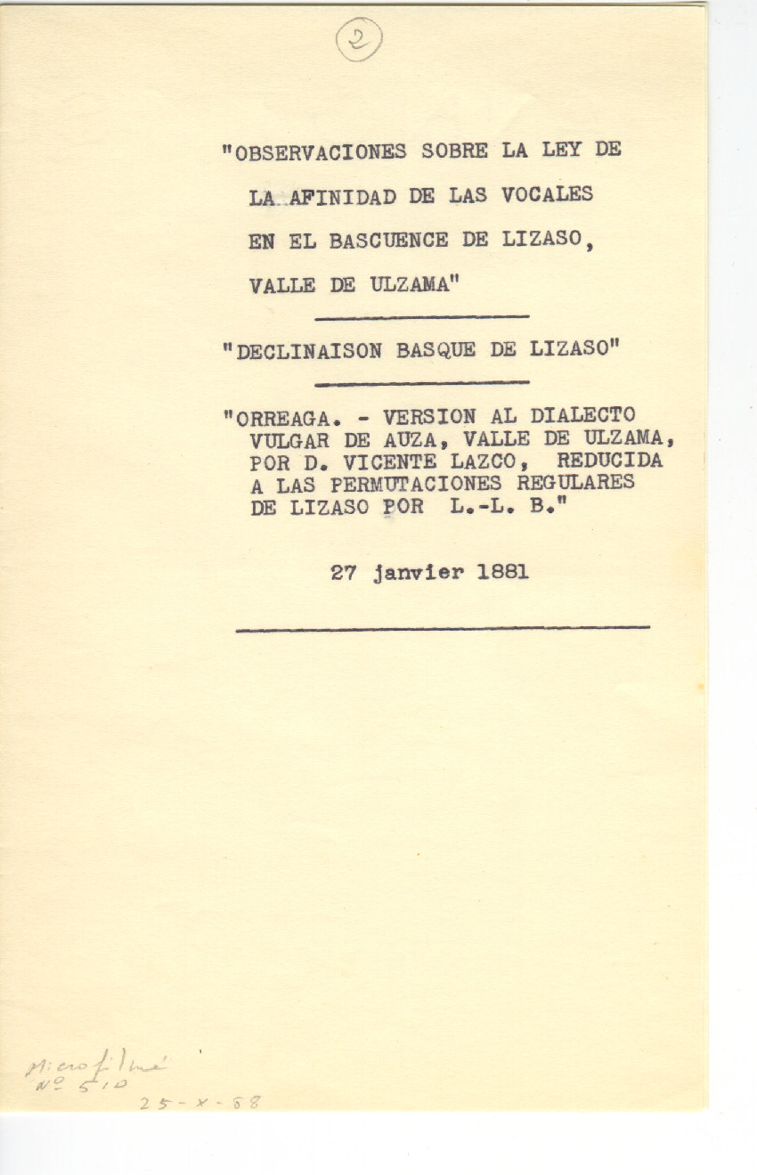 BONAPARTE, L.L.- Arturo Campioni bidalitako lanak: 2. Observaciones sobre la ley ...ene I bascuence de Lizaso
